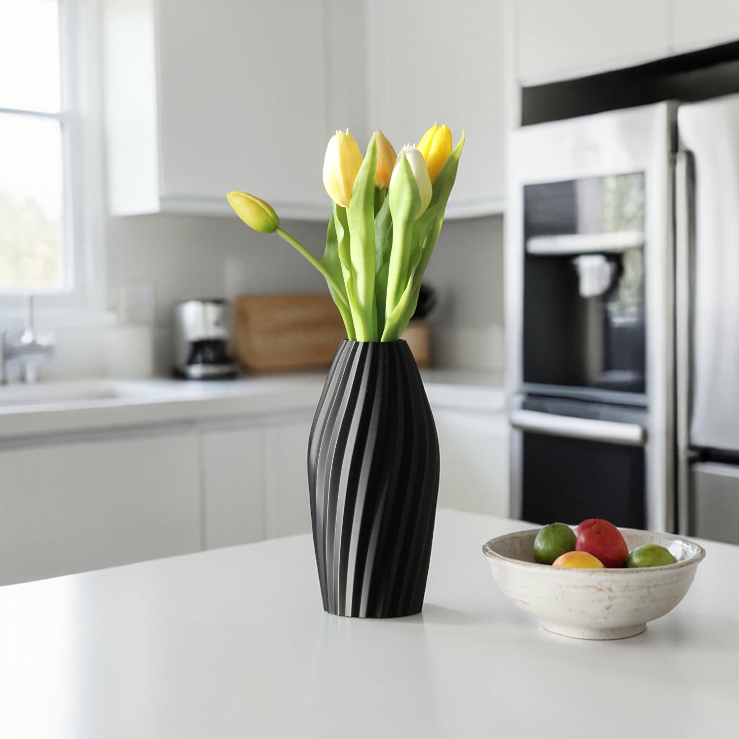 Im Gegensatz zu vielen 3D-gedruckten Vasen ist dieses Modell wasserfest gefertigt und eignet sich dadurch problemlos für frische Blumen.