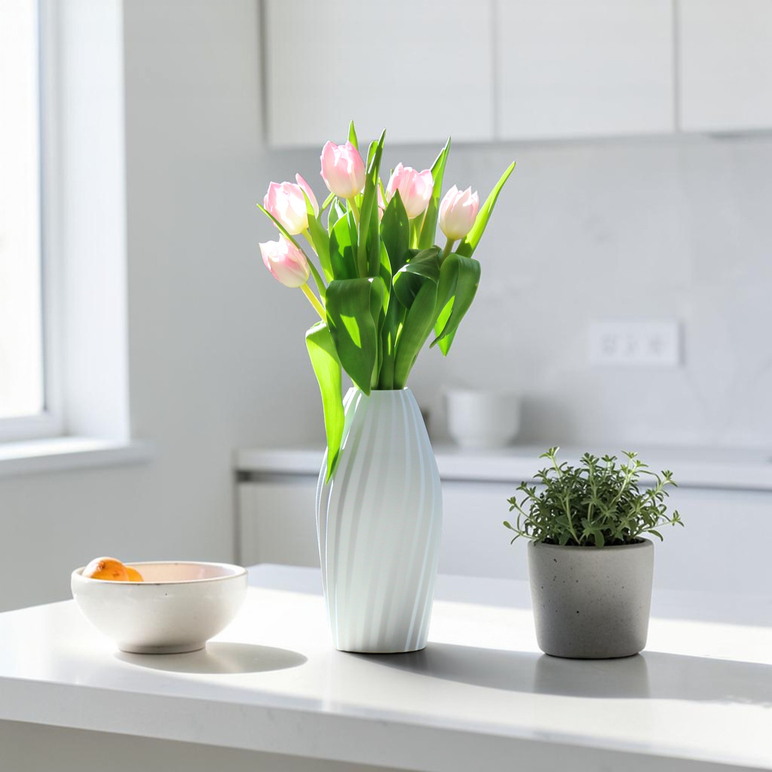 Im Gegensatz zu vielen 3D-gedruckten Vasen ist dieses Modell wasserfest gefertigt und eignet sich dadurch problemlos für frische Blumen.